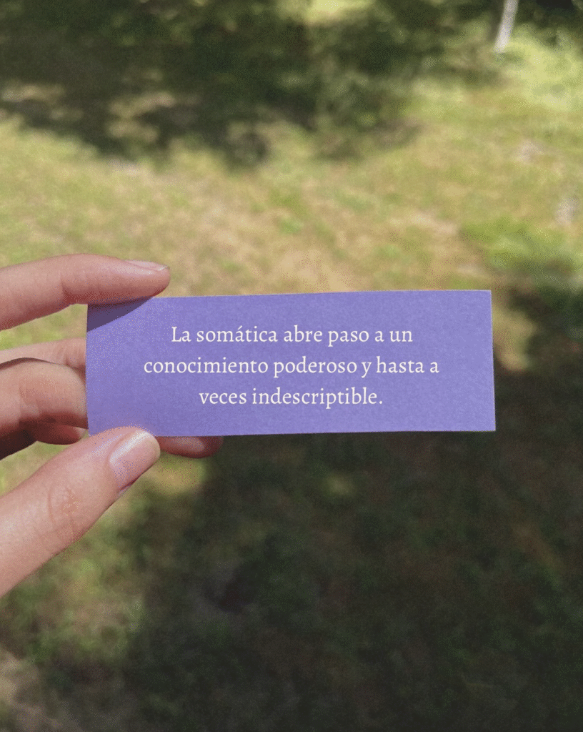 “Sacar capas que duelen y que se sienten reprimidas para descubrir una nueva versión de ti que sana, que se permite el disfrute y la conexión íntima desde la consciencia de la integridad y autenticidad. Investigar sobre tu propia sensación de seguridad y amabilidad, sobre los bordes que te sostienen y conversan con el afuera.»